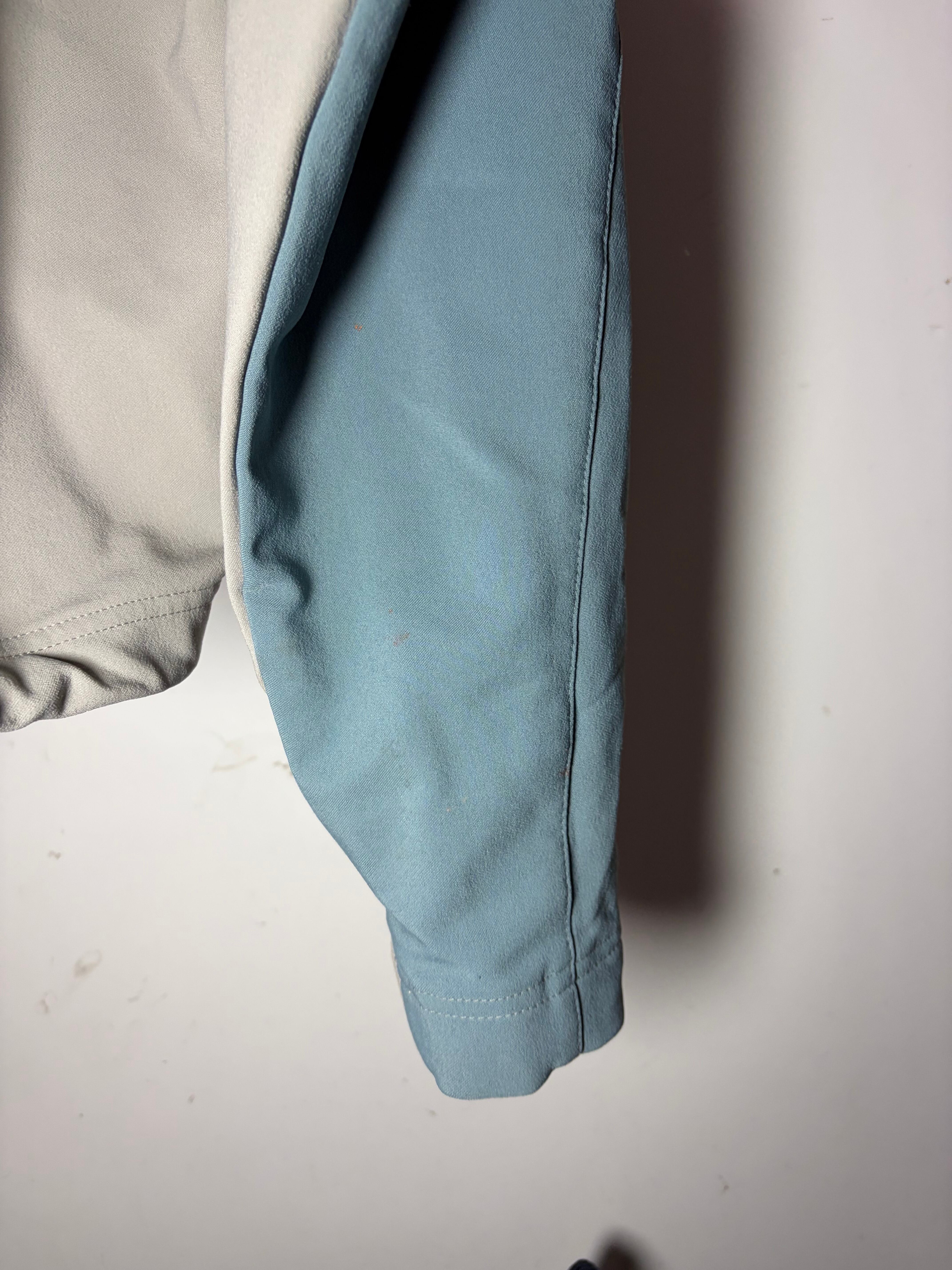 爽やかなグレーとライトブルーのソフトシェル